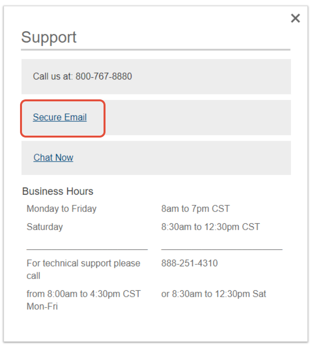 If you are in need a document in regards to your account, you may submit a support ticket via online banking. Simply log in to your online banking, Select Support in the upper right hand corner, and select the middle option for secure email. Just tell us what document you need and we will reply to the ticket with the requested document attached.